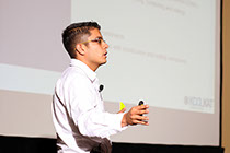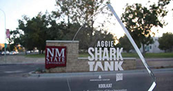 Carlos Murguia describe el beneficio de KoolKat roof coating technology en un panel del tanque “sharks” durante el Aggie Shark Tank event , el Miercoles 19 de Octubre del 2016 en Las Cruces Convention Center. Murguia recibió el premio “Audience Favorite” con un bono de $1,00O USD.